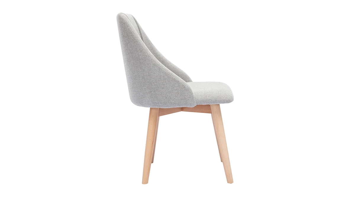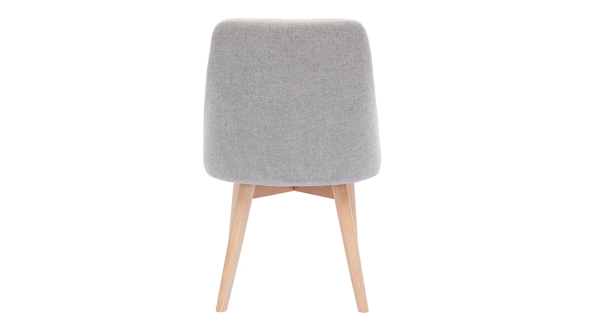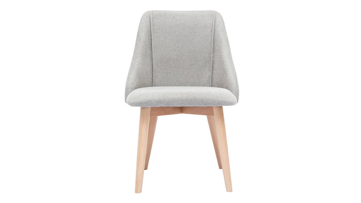Ces chaises légères et polyvalentes allient confort et convivialité. Avec leur dossier enveloppant (H40 cm) et leur assise généreusement rembourrée, elles jouent la carte de la douceur. Les formes douces répondent aux teintes naturelles dans un équilibre parfait et une élégance subtilement décontractée. Leur tissu effet velours texturé gris et s’accorde parfaitement avec le piètement en hêtre massif. Détail de style : les deux surpiqûres situées à l’intérieur du dossier souligne la ligne graphique sobre et affirmée de ces chaises.