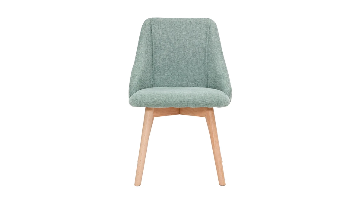 Ces chaises de salle à manger et cuisines légères et polyvalentes allient confort et convivialité. Avec leur dossier enveloppant (H40 cm) et leur assise généreusement rembourrée, elles jouent la carte de la douceur. Les formes douces répondent aux teintes naturelles dans un équilibre parfait et une élégance subtilement décontractée. Leur tissu effet velours texturé coloris vert céladon invite à la quiétude et s’accorde parfaitement au piètement en hêtre massif. Détail de style : les deux surpiqûres situées à l’intérieur du dossier souligne la ligne graphique sobre et affirmée de ces chaises.
