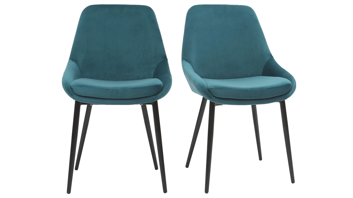 Le velours bleu pétrole et le piètement fin en métal s’associe pour former un look ultra tendance et donner à ces chaises design un style délicat et raffiné. Le revêtement en tissu velours au toucher très agréable est idéal pour une salle à manger alliant charme et douceur. Matériaux tendances, coloris intemporel, formes tout en courbes…Tous les ingrédients sont réunis pour que ces chaise de salle à manger habillent d’une élégance intemporelle votre coin repas.