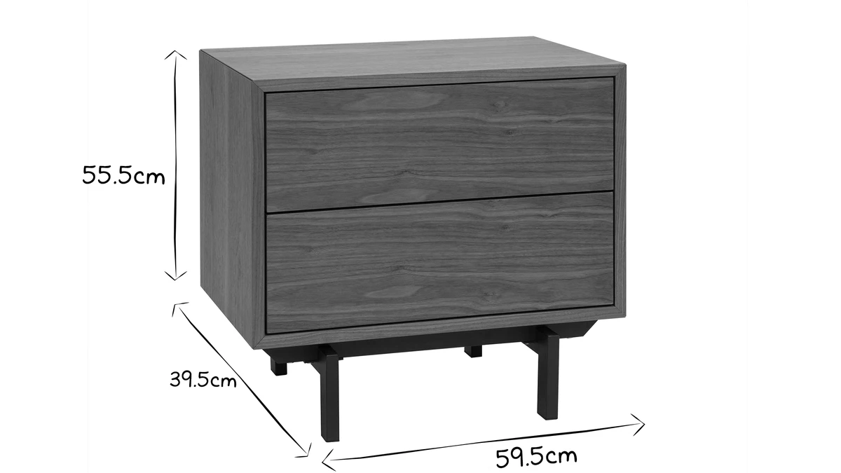 Matières : panneaux de fibres de bois placage noyer, métal