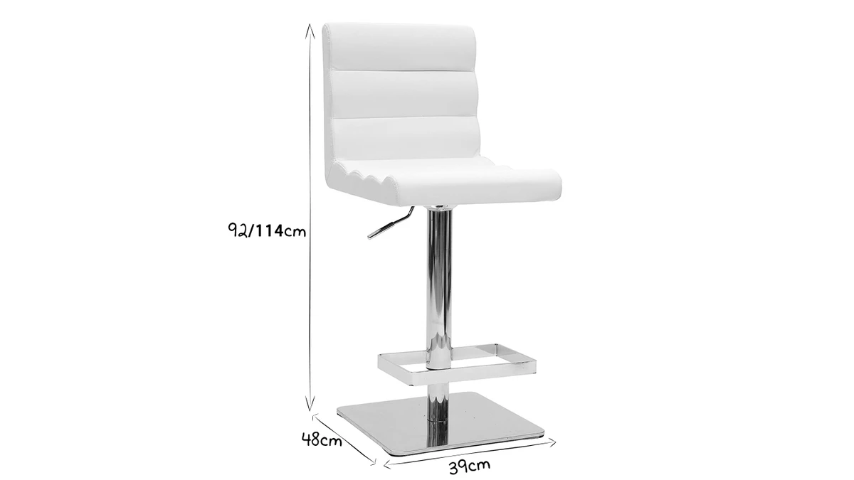 Très fonctionnel, il est en polyuréthane et métal chromé résistants, très faciles d’entretien. Il bénéficie également d’une bande antidérapante et anti-rayures sous le socle afin de protéger vos sols. Pour plus de praticitié, il est réglable en hauteur et pivote à 360°.