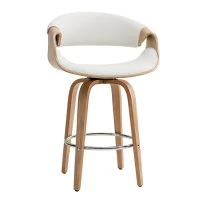 Tabouret De Bar Chêne Et Assise Blanche H65 Cm LUCIA