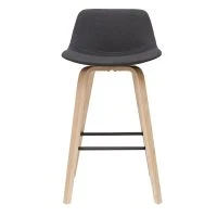 Tabourets De Bar Scandinaves En Tissu Gris Foncé Et Bois Hêtre Massif H65 Cm (lot De 2) HASTA