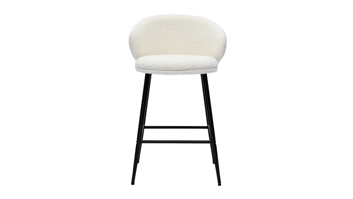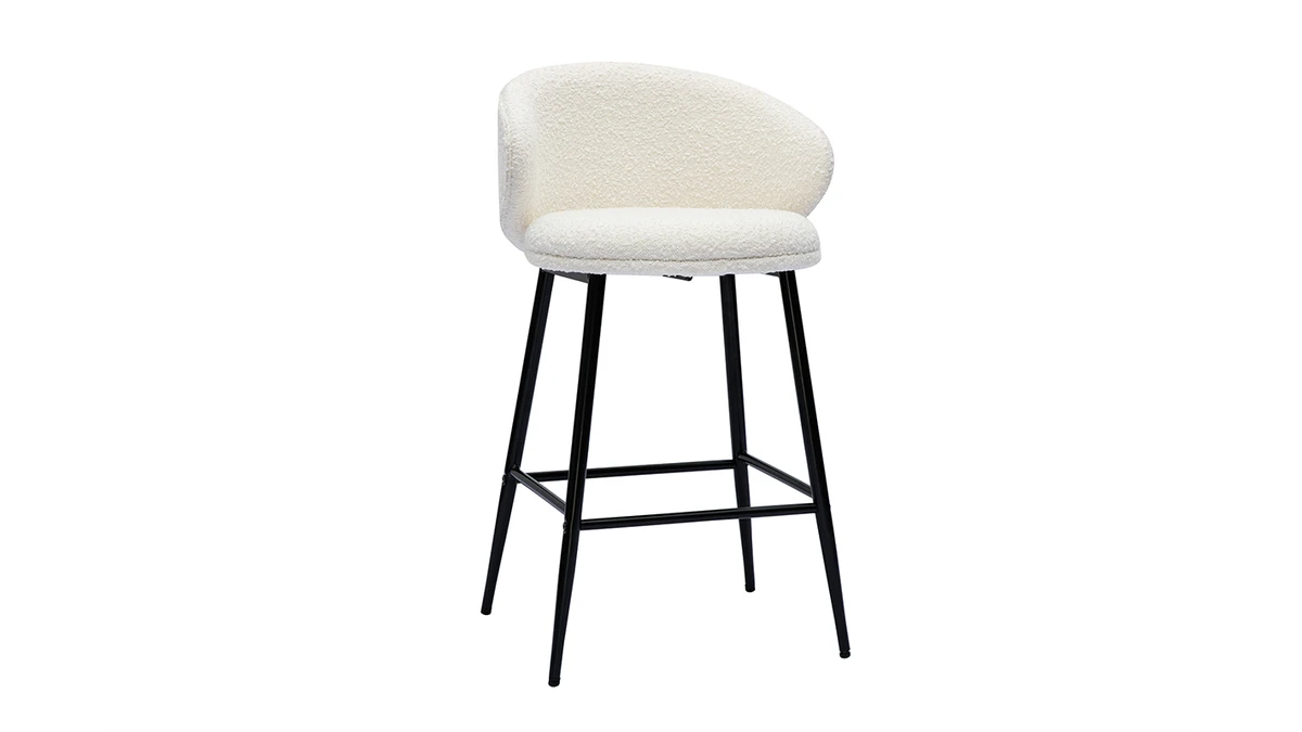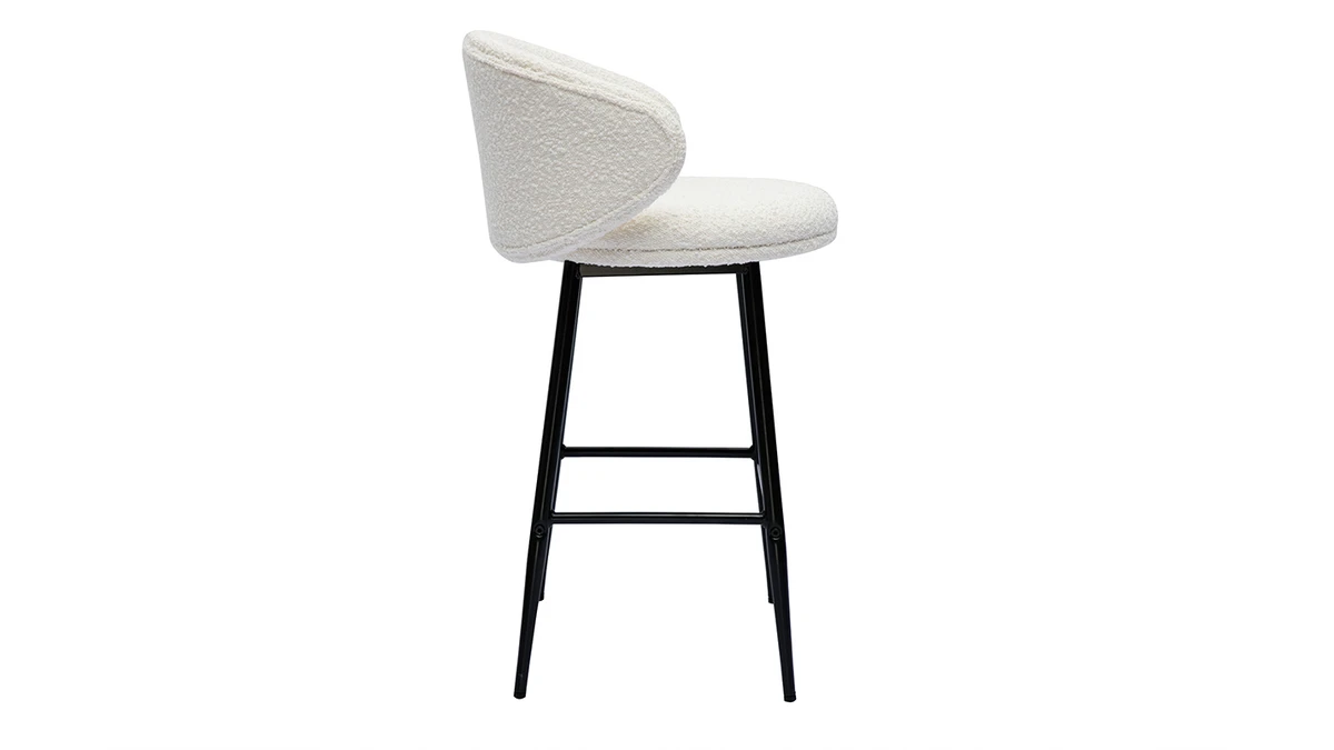 Les tabourets de bar ROSALIE se caractérisent par leur design tout en courbes et leurs finitions soignées. Ces tabourets hauts combine élégamment une assise enveloppante en tissu bouclette à un piètement métallique travaillé tout en légèreté. Les volumes s’équilibrent parfaitement et les éléments sont liés d’une manière fluide et délicate.
