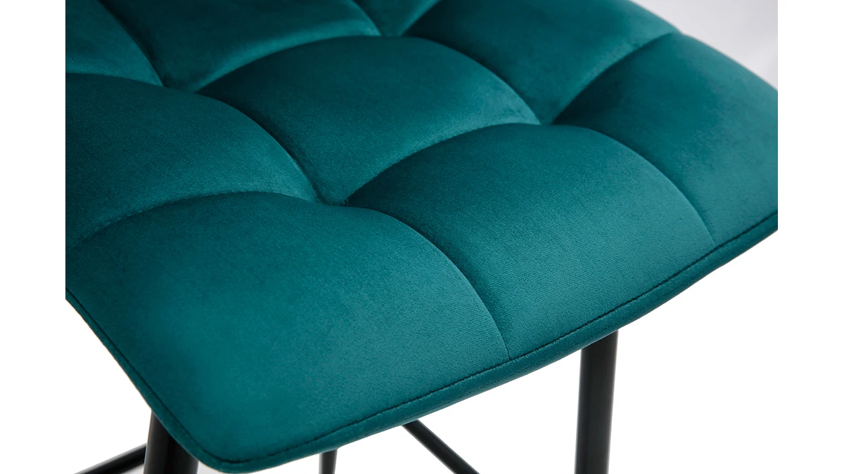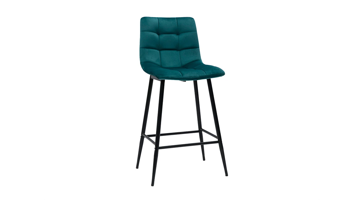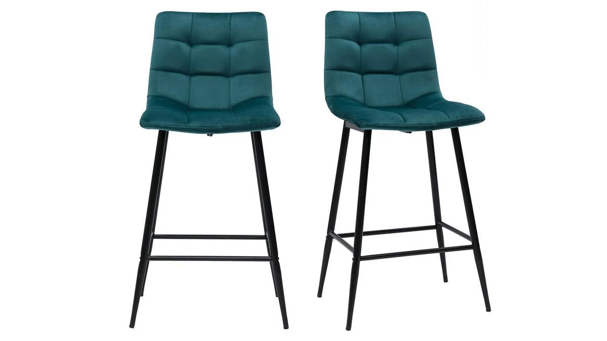 Du café pris sur le pouce au dîner entre amis, en passant par le brunch dominical, les tabourets de bar MAXWELL se montrent à la hauteur de toutes les situations ! Perchés sur des pieds fuselés en métal noir, ces tabourets de bar à la silhouette élancée ne manquent pas d’allure. Leur ligne indémodable, leur élégant capitonnage et leur velours soyeux bleu pétrole (100% polyester) donnent le ton du raffinement ultime.