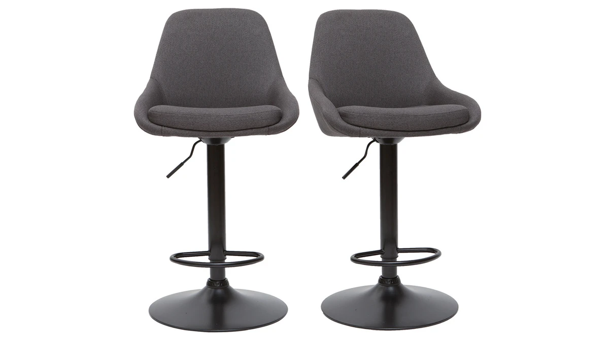 Ces tabourets de bar offrent une grande liberté de mouvement grâce à leur assise pivotante à 360° et leur hauteur réglable. Changez en un tour de main la hauteur d’assise : de 64 à 86 cm.
