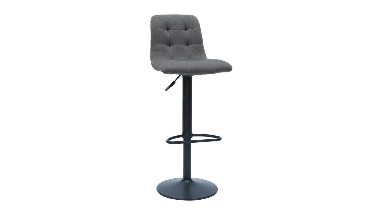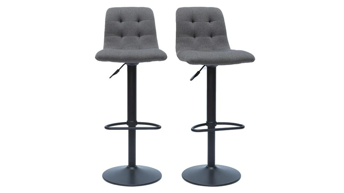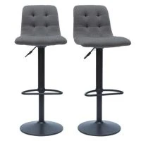 Ces tabourets de bar à l’allure légère et moderne associent un joli tissu gris foncé (100% polyester) à un piètement en métal noir réglable en hauteur. Avec leur élégant capitonnage, ces tabourets de bar s’intègrent facilement dans tous les intérieurs.